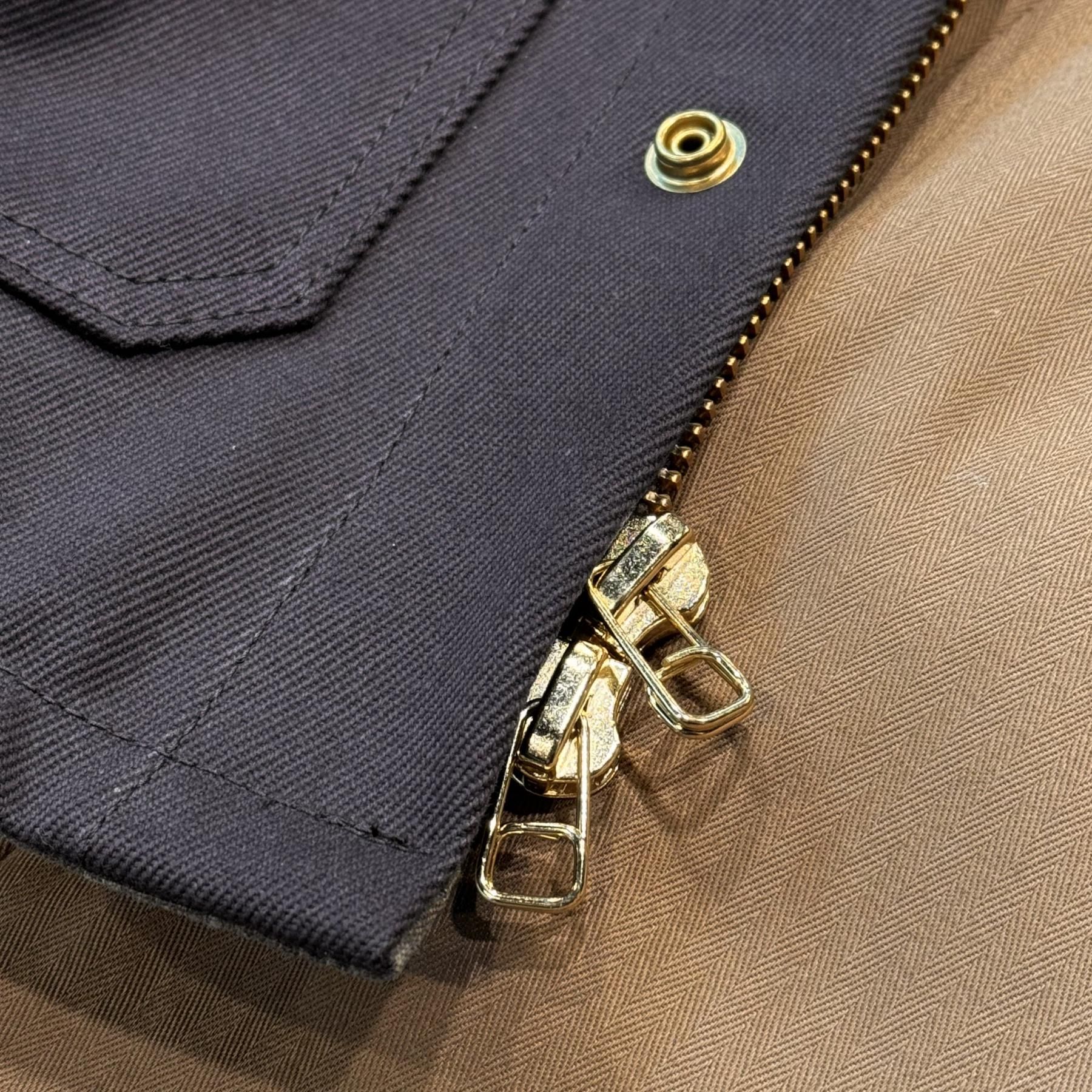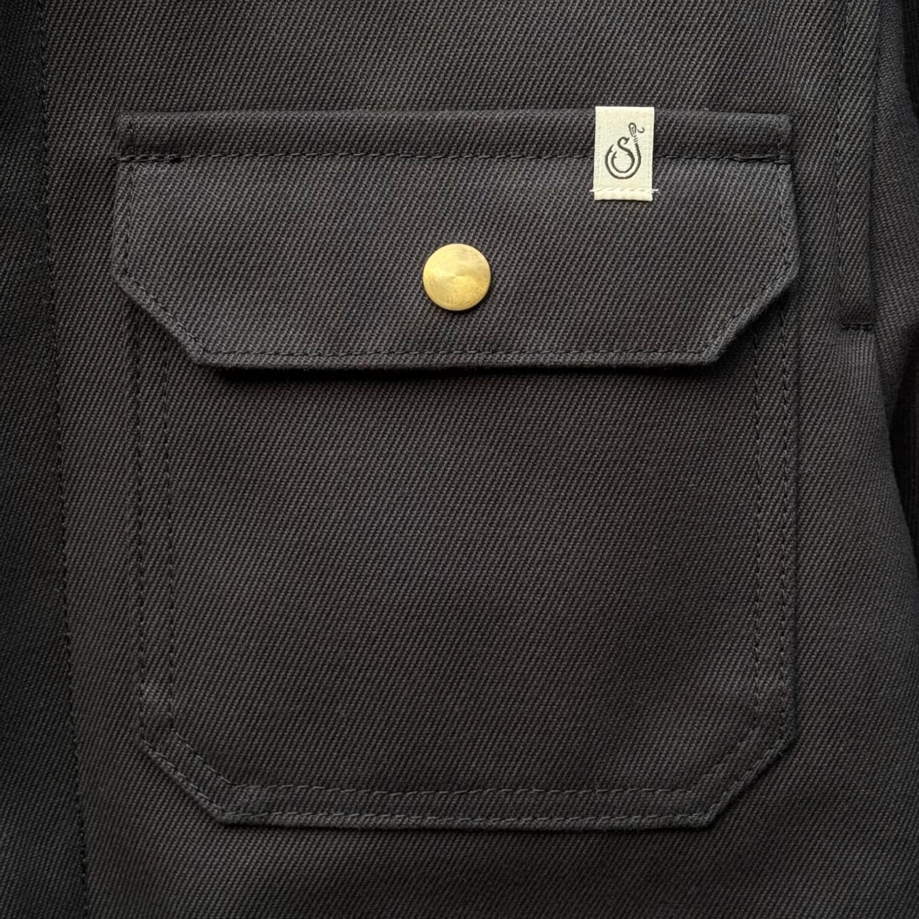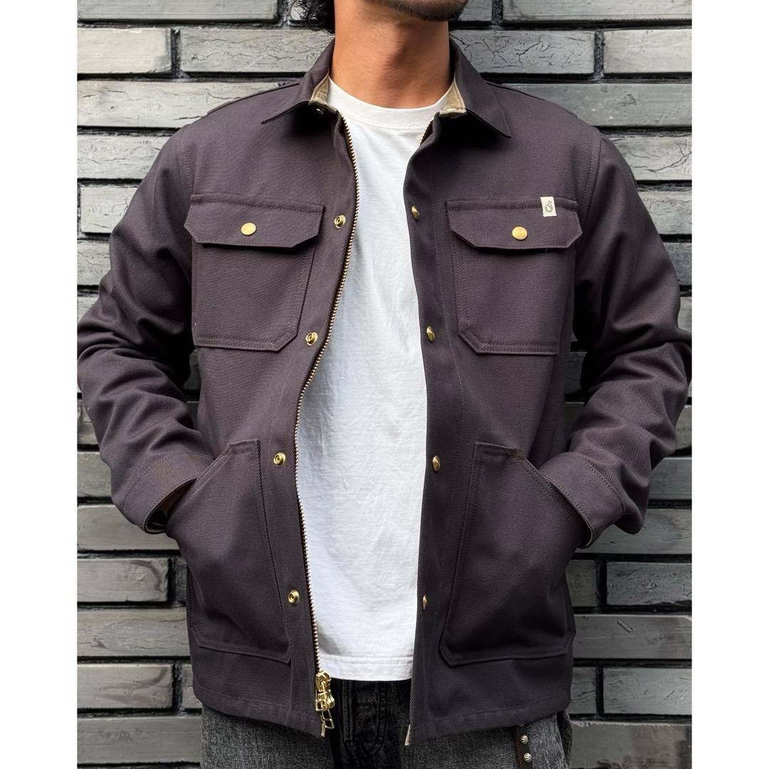 往年のチョアコート(カバーオール)を彷彿させる無骨なボディーには、使い勝手のよいポケットや作業性を良くするバックプリーツ、オリジナルで製作されるシンバルスナップボタン、抜群の耐久性を誇る#10ブラスジッパーなど、デザインではなく堅牢なワークウエアとしてのディテールが備わります。