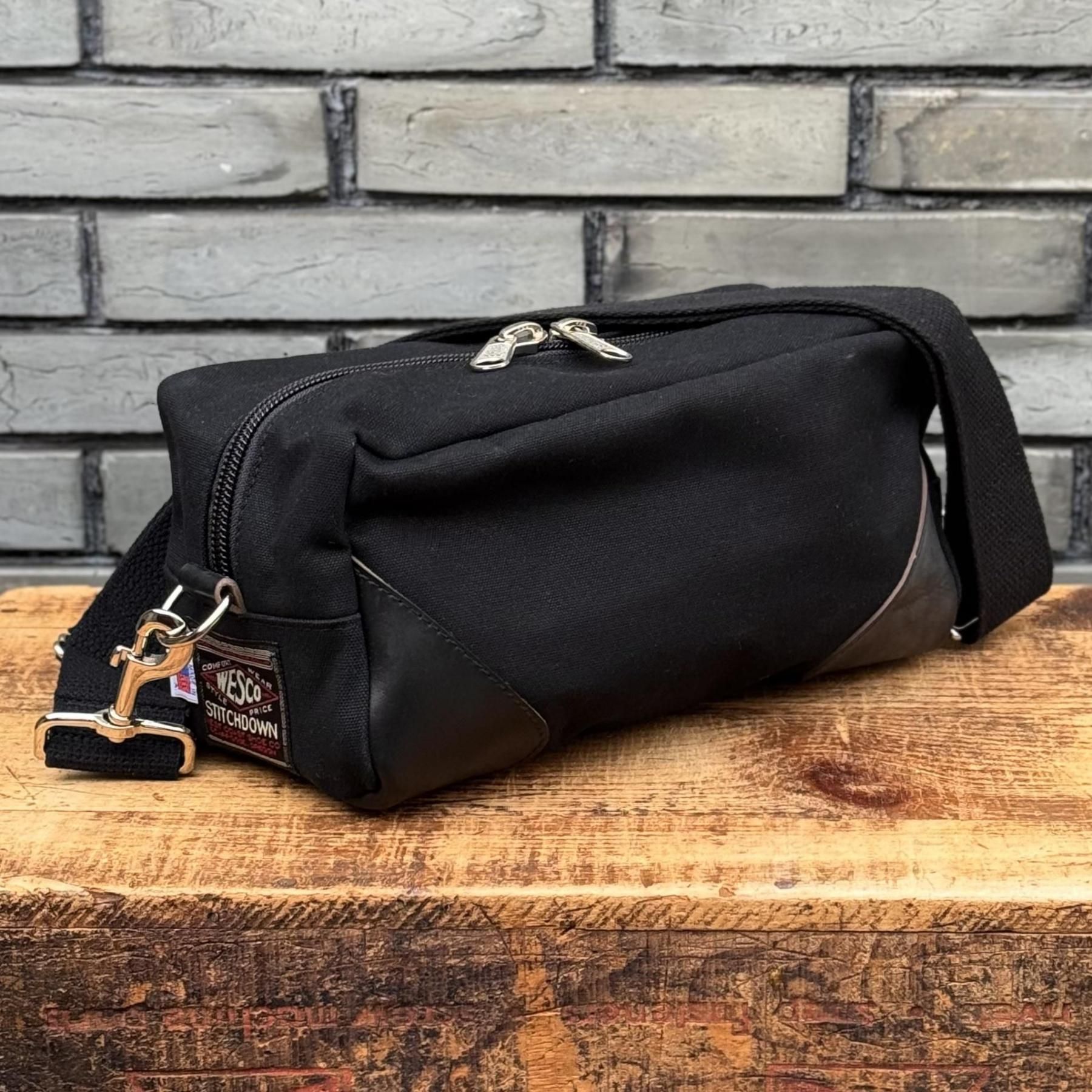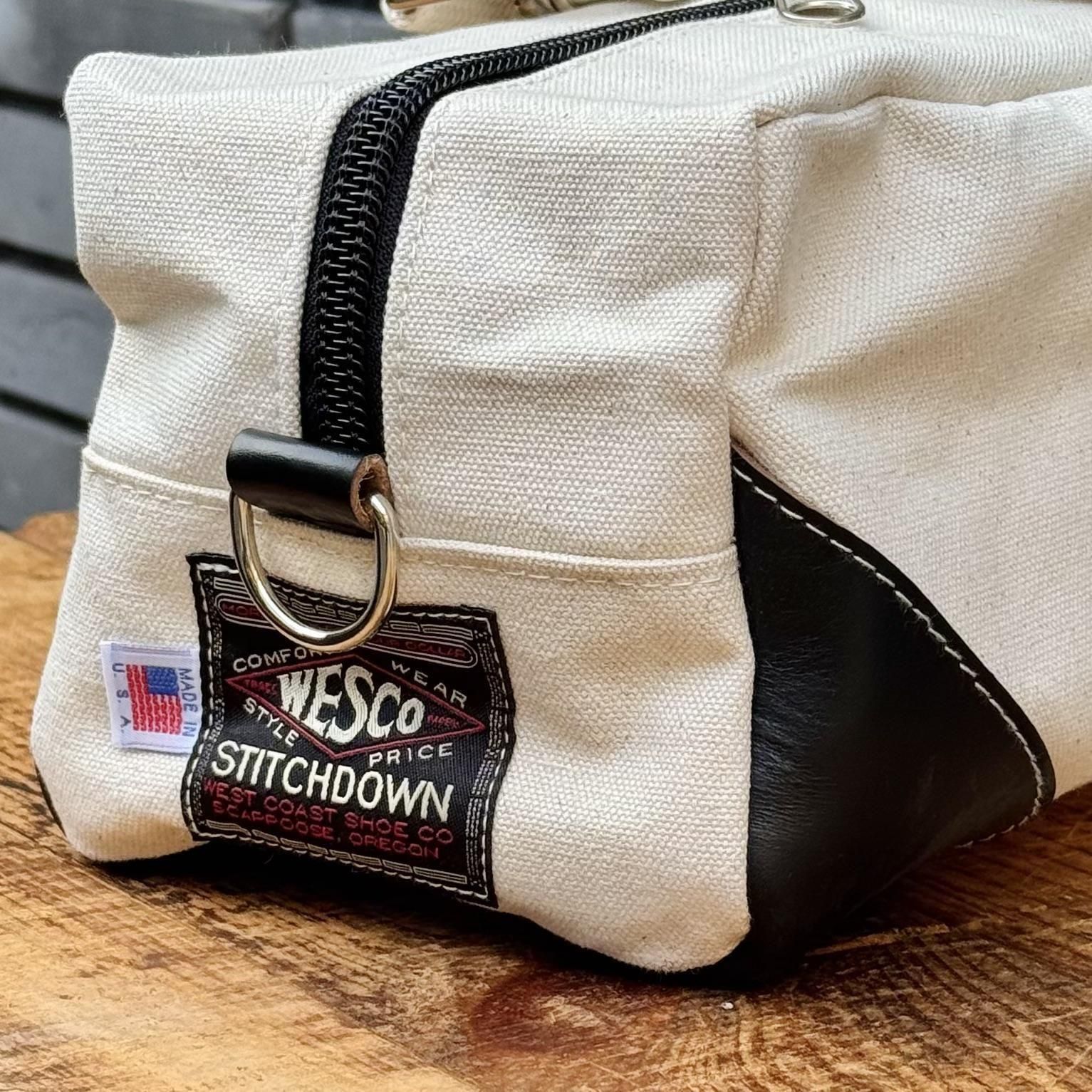 バッグのボディーには、ベッケルのテントにも使用されている20ozのアーミーキャンバスを採用。撥水性と通気性に優れており、普段使いからツーリングまで気軽に愛用いただけます。使用中に負荷がかかる底面の四隅には、WESCOがブーツにも使用している肉厚なホースハイドが取付けられており耐久性も抜群。サイドには、1930年代にWESCOが使用していたラベルを元に製作された特別なレーヨンラベルが縫い付けられているスペシャルバッグが完成しました!