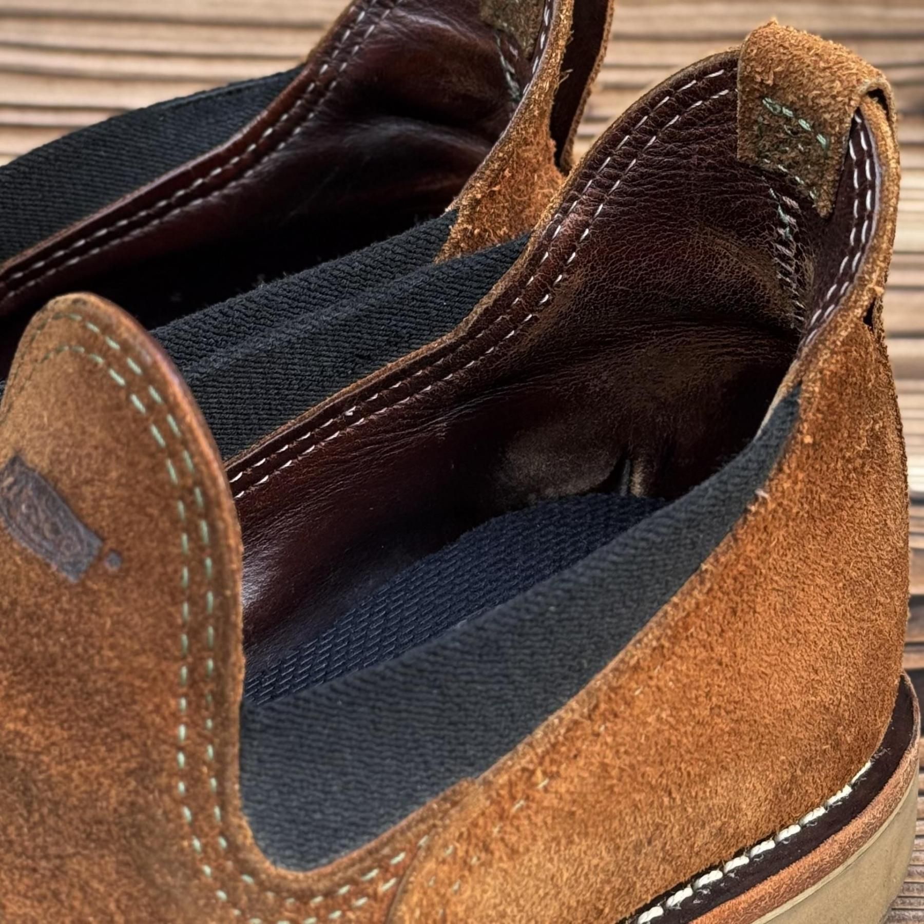 サイドゴアのゴムの伸びも少なく、フィット感の良さも魅力。見た目の温かみとタフな機能性を兼ね備えた一足です。