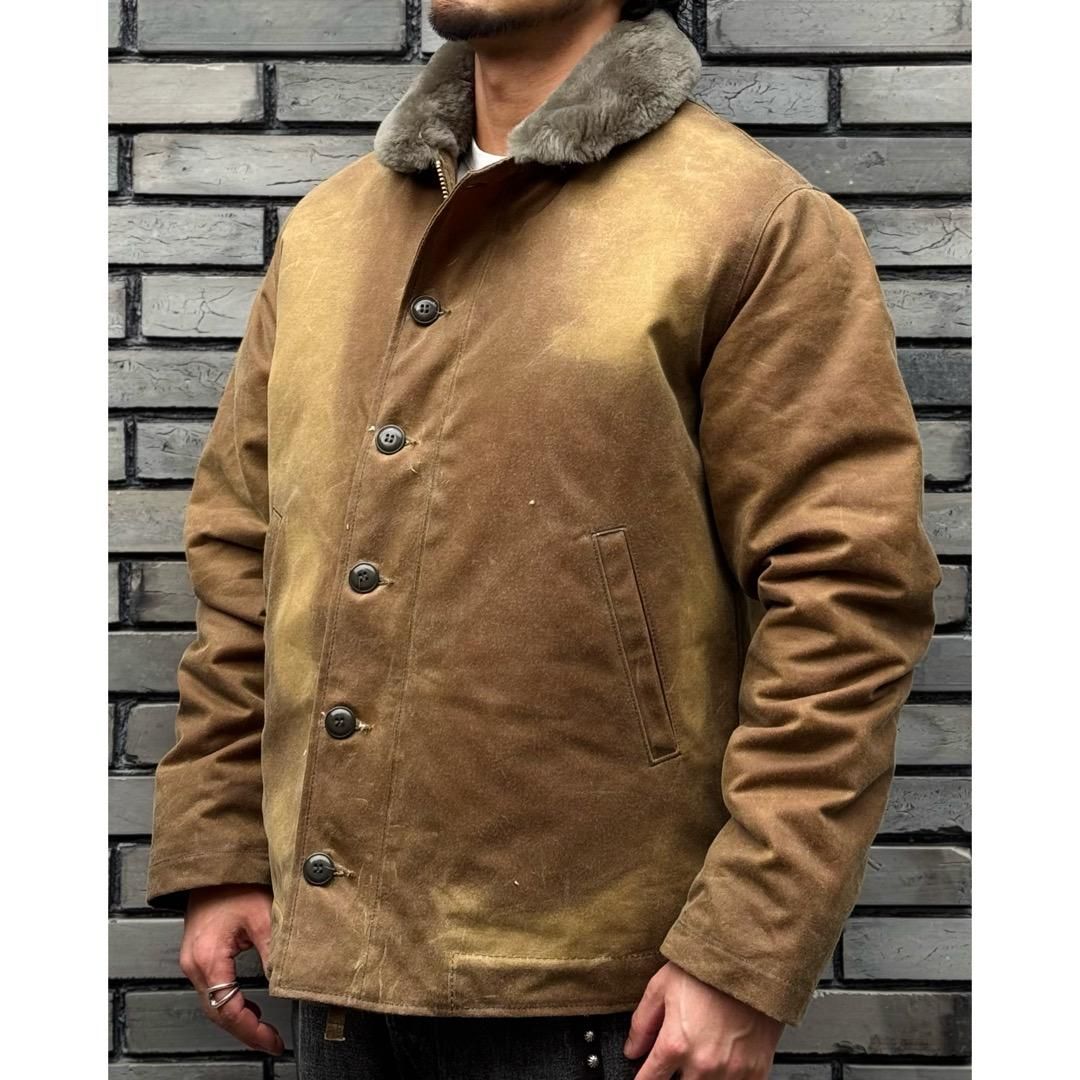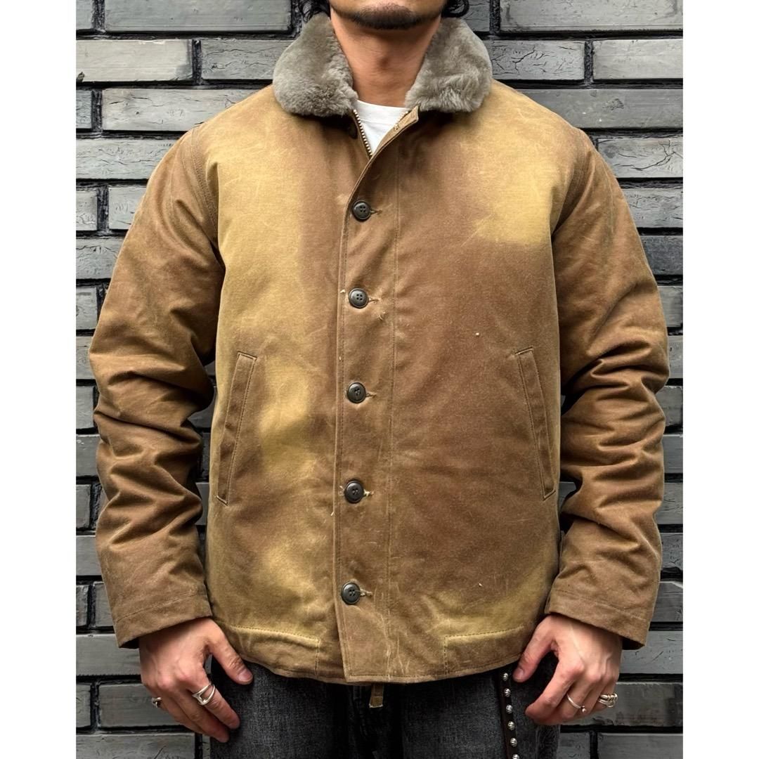1940年代から50年代にかけてアメリカ海軍(US NAVY)の所属兵士に支給されていたミリタリージャケットをベースに、現在の日常で極寒の環境に晒されるモーターサイクリストなど、より高い防寒性を求める人達のためにDEHENが製作する新解釈のN-1 Deck Jacketです。
