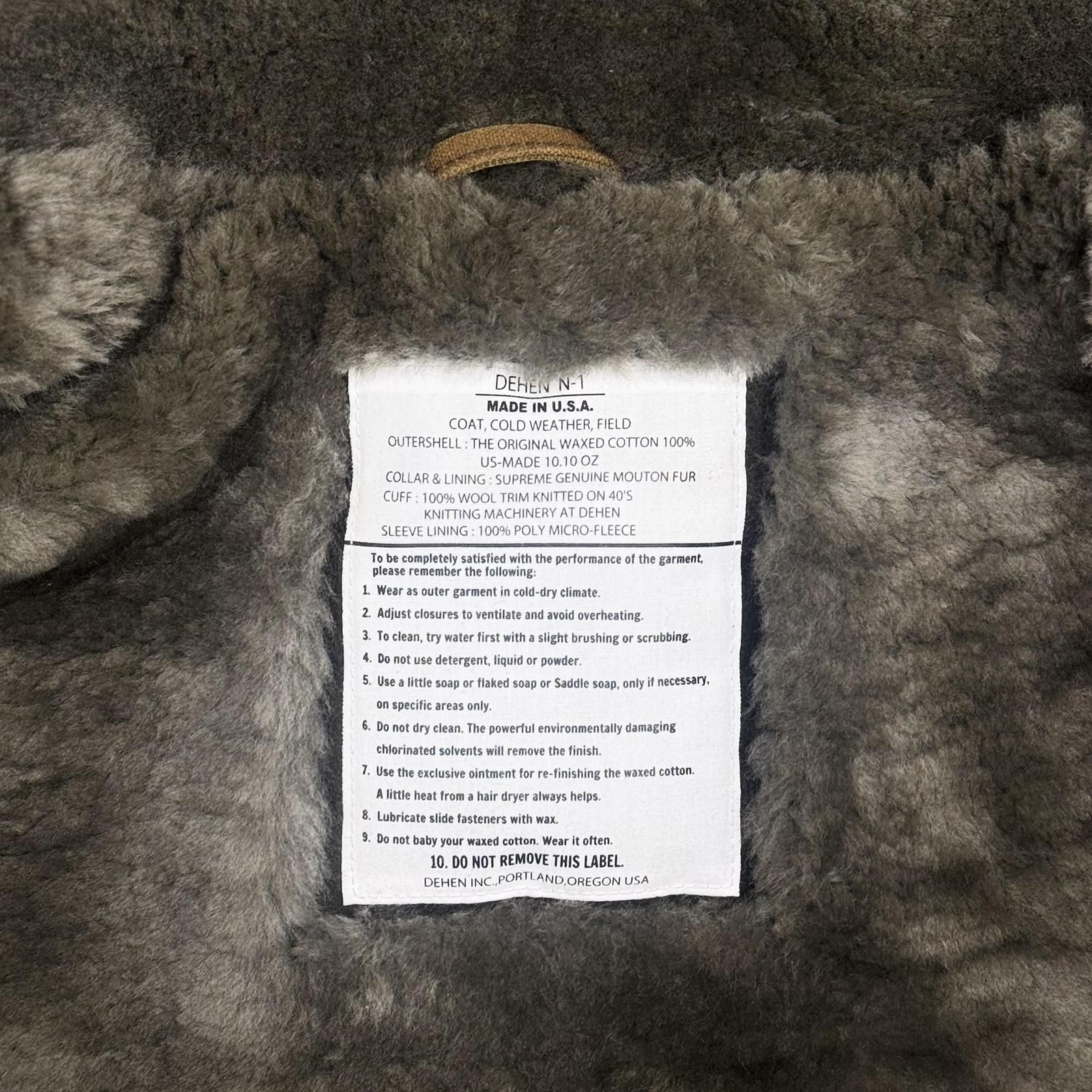 『【DEHEN】N-1 Deck Jacket -Hardtack Waxed Canvas/Gray Mouton-』