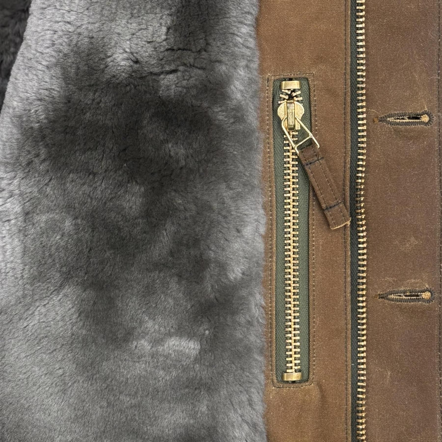 アウターファブリックには耐久性、耐水性、防風性に優れたワックスキャンバスを、ライニングと襟にはアルパカの毛の替わりにメリノ種の羊から取れる高品質なムートンを使用しています。