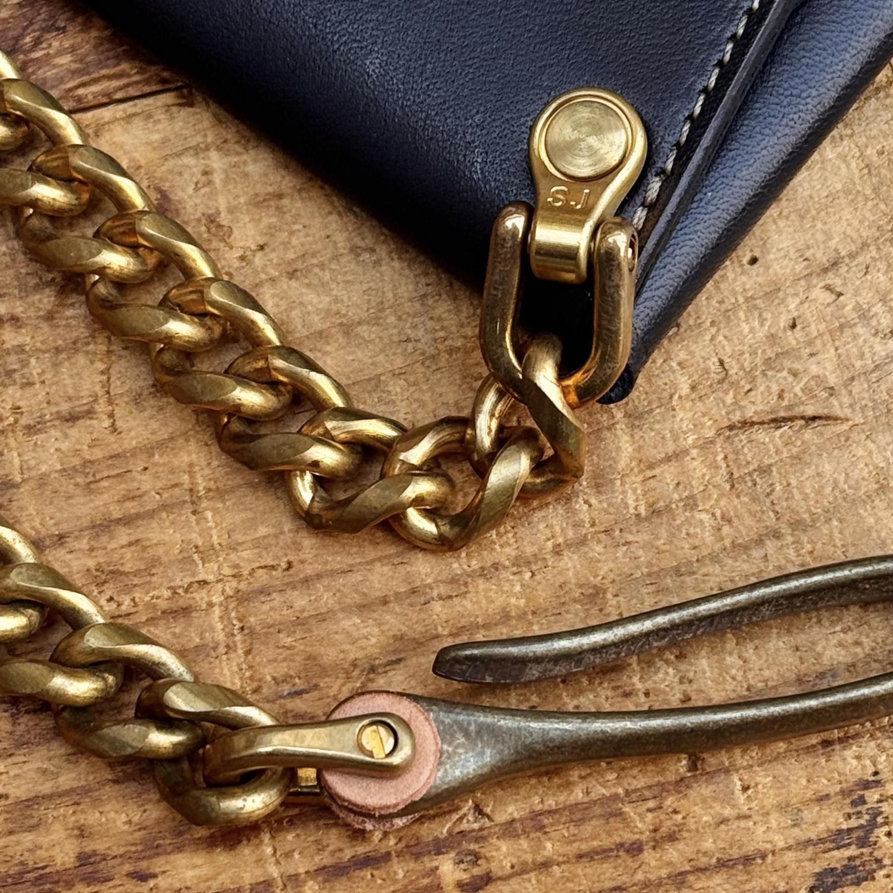 ウォレットとチェーンの接続部に「スイベル」と「シャックル」が備わったことによりチェーンが以前よりしなやかに動きます。稼働部にヌメ革のワッシャーを挟むなど抜かり無いこだわり様。