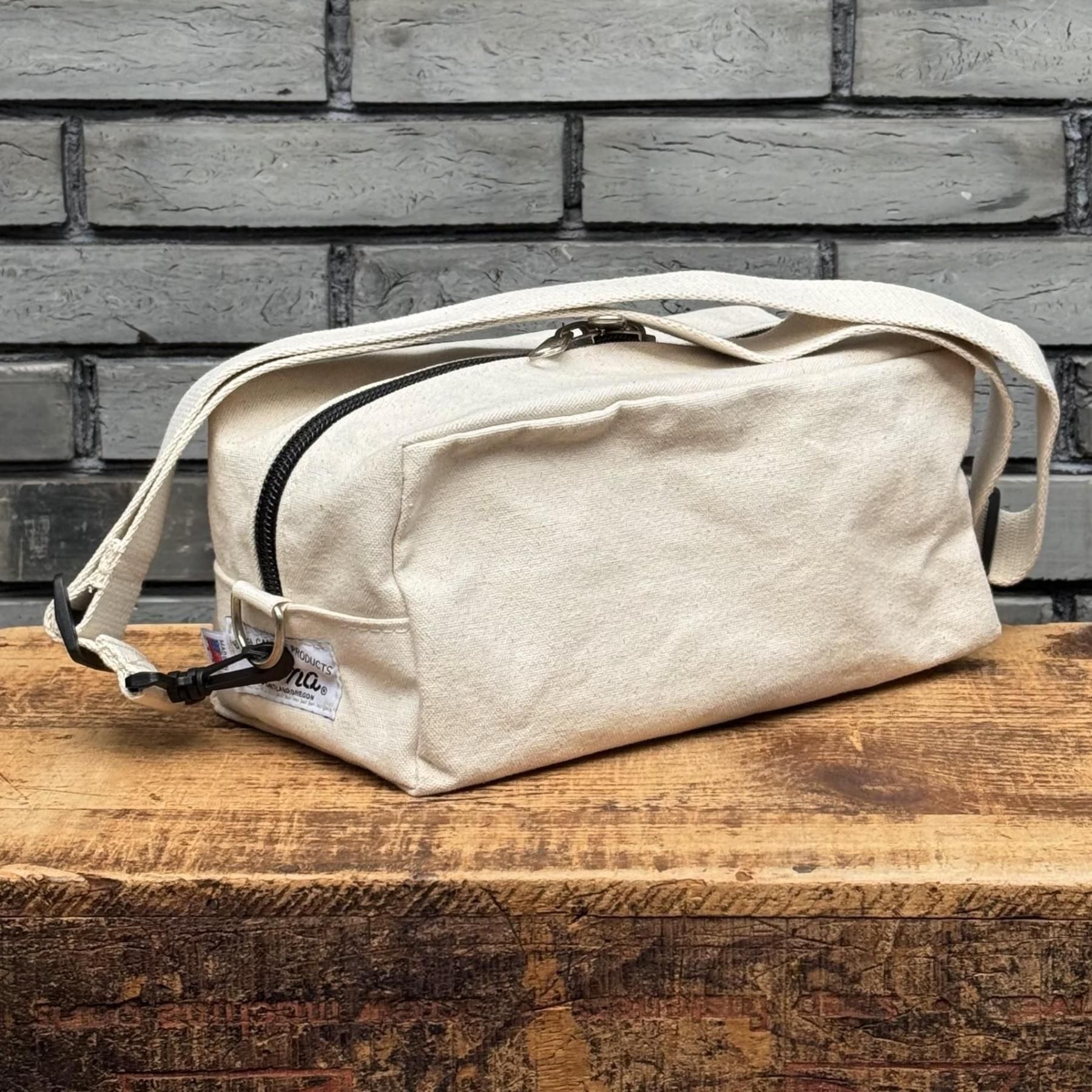 また、キャンバスなのでバッグの重量が軽いうえにサイズも普段の使用にちょうど良く、ショルダーストラップを利用して持ち運んだり、トートバッグやボストンバッグなどの個分け用に使用したり、工具などを入れてバイクの車体に括り付けるのにも適しています。