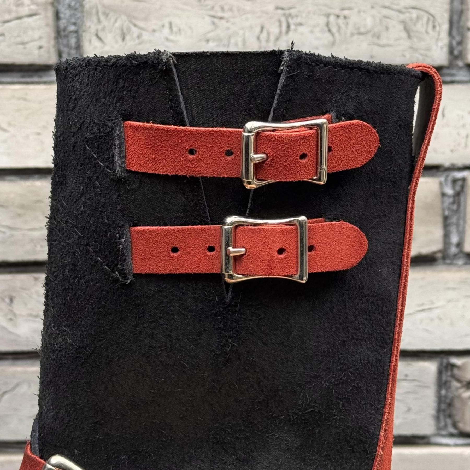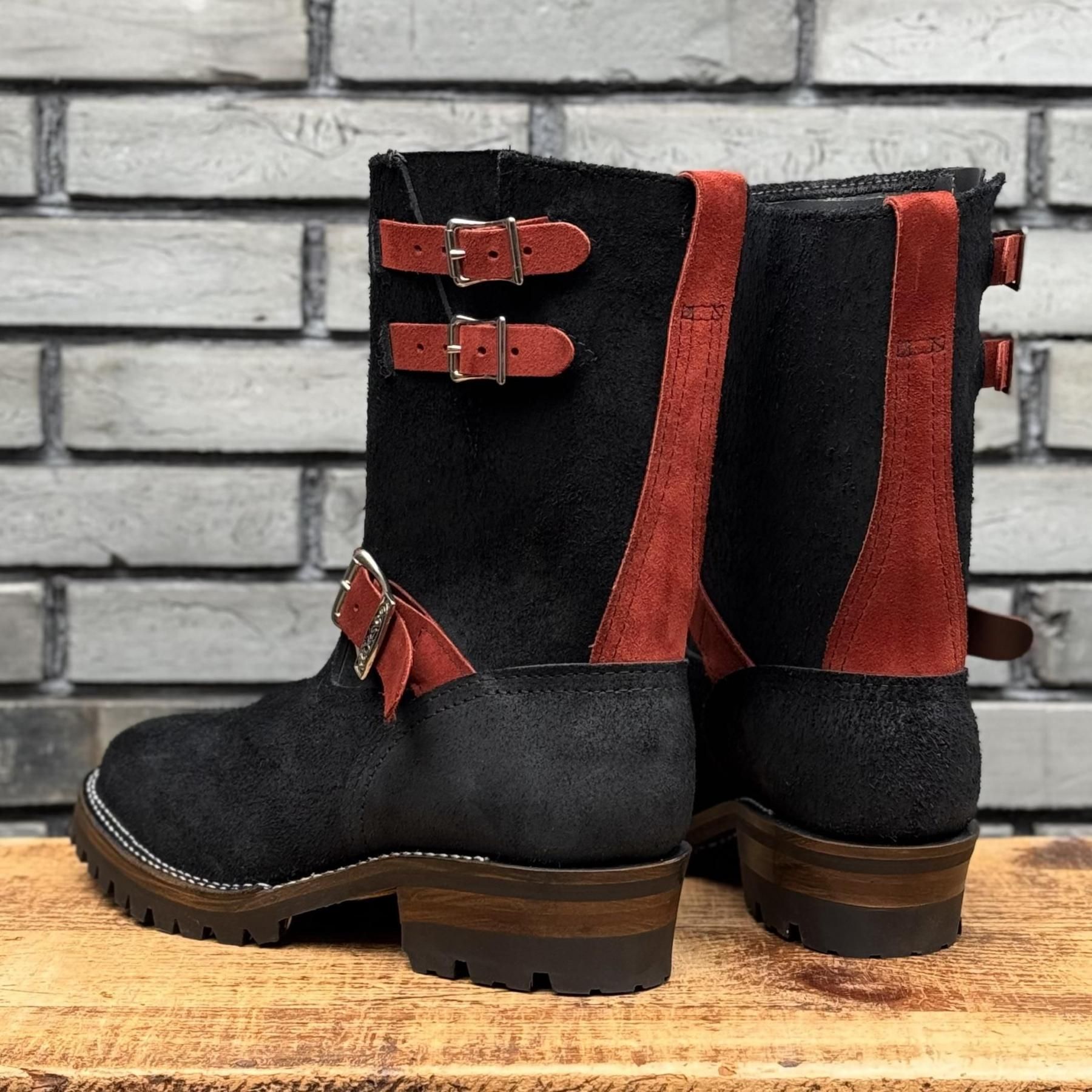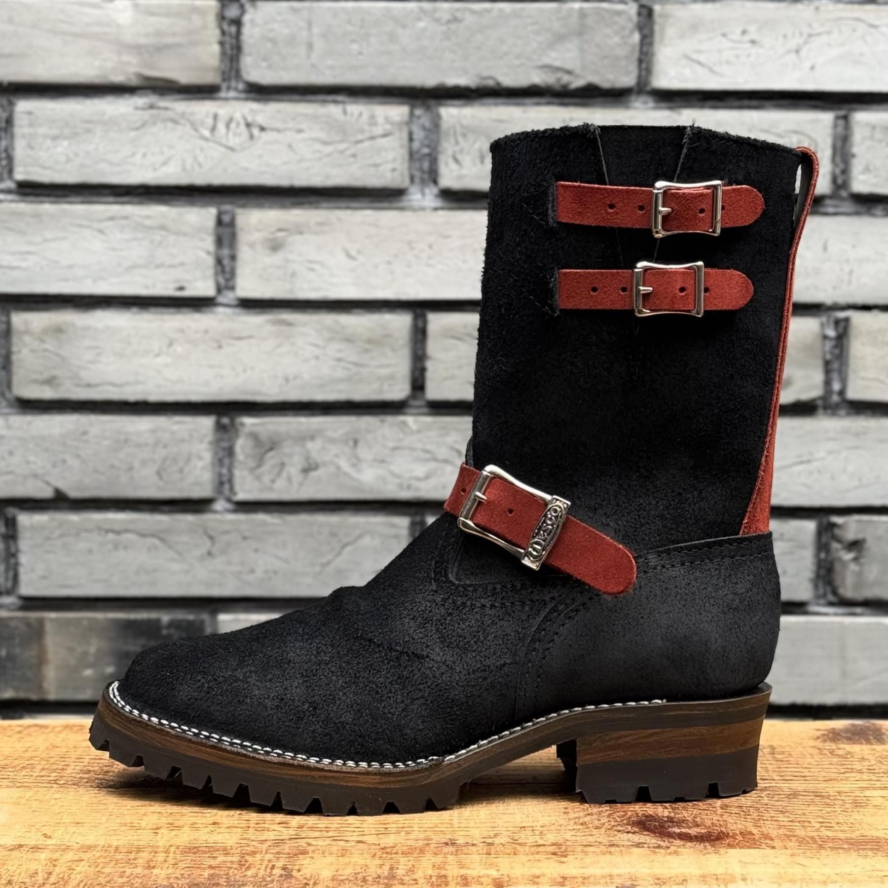 『【ストックブーツ】BOSS Roughout Black×Burgundy Domain 9"Height #100sole 2 Top Straps』