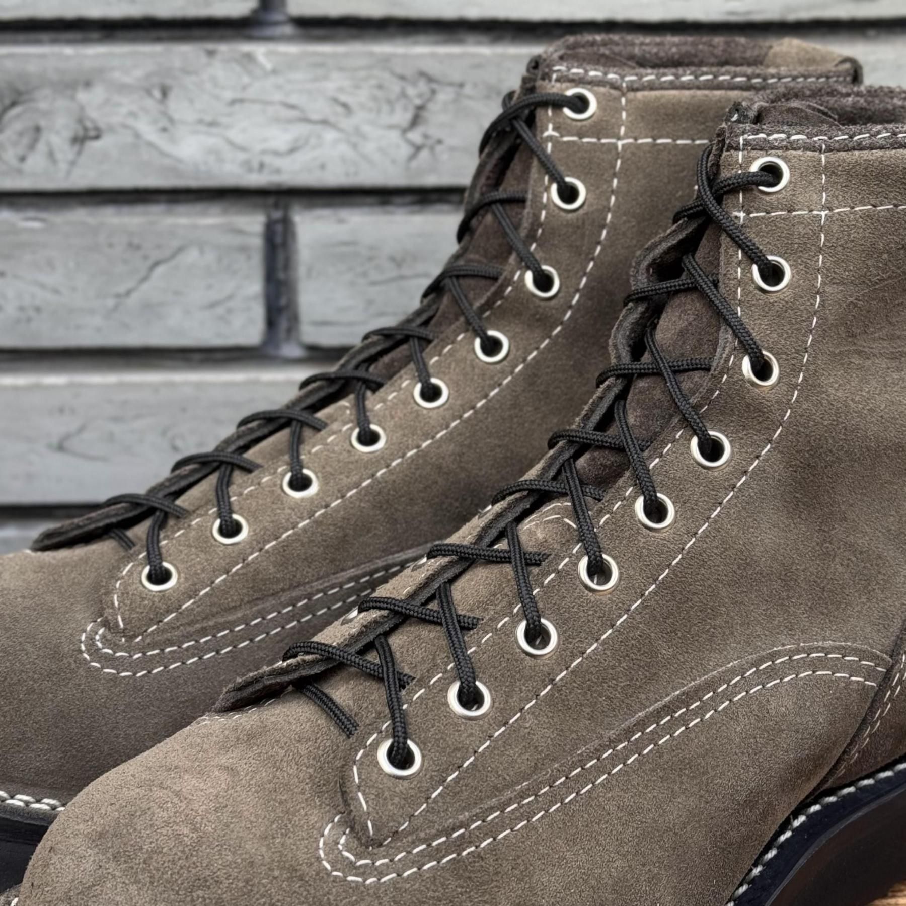 『【ストックブーツ】WARREN Roughout Charcoal 7"Height #4014Black Nickel Eyelets, Lace to Toe』