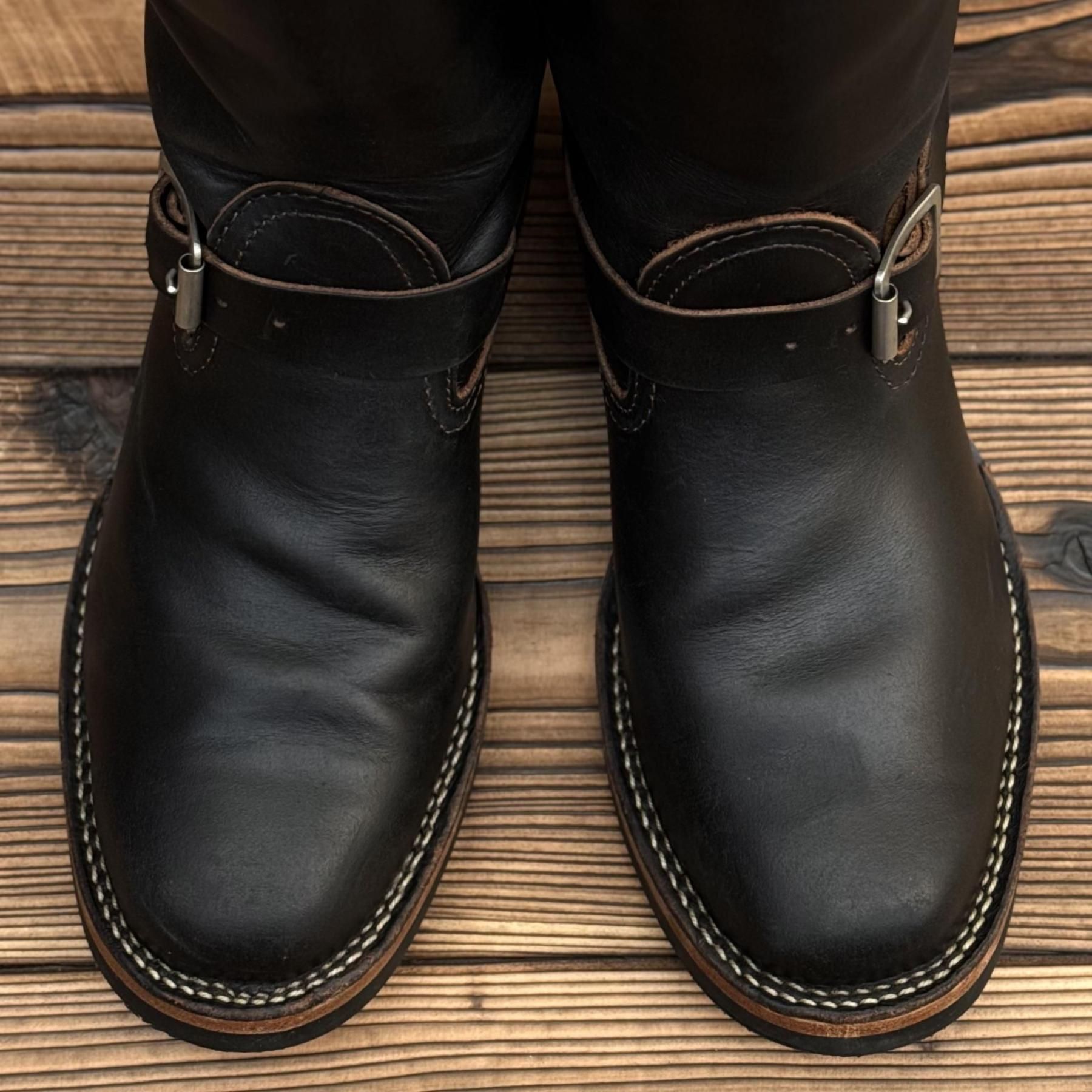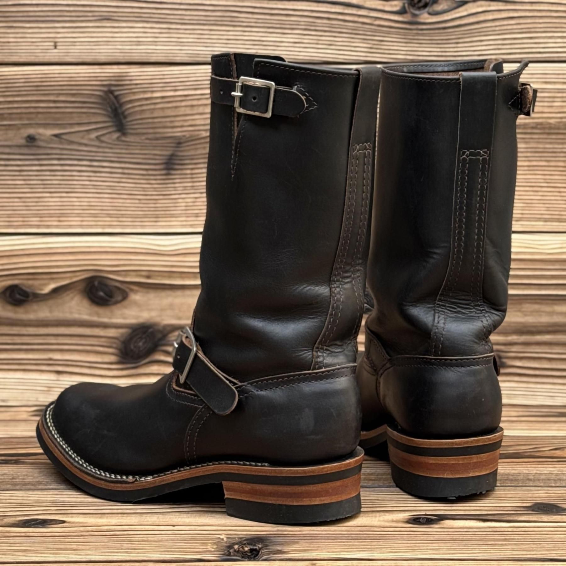 シャープなナローラストに日本限定のパールローラーバックルを合わせた、落ち着いた雰囲気のエンジニアブーツです。